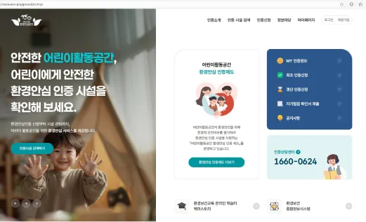 - 상세내용 : 어린이활동공간 환경안심 인증 부여, 기후에너지환경부장관 명의 현판 및 인증서 제공