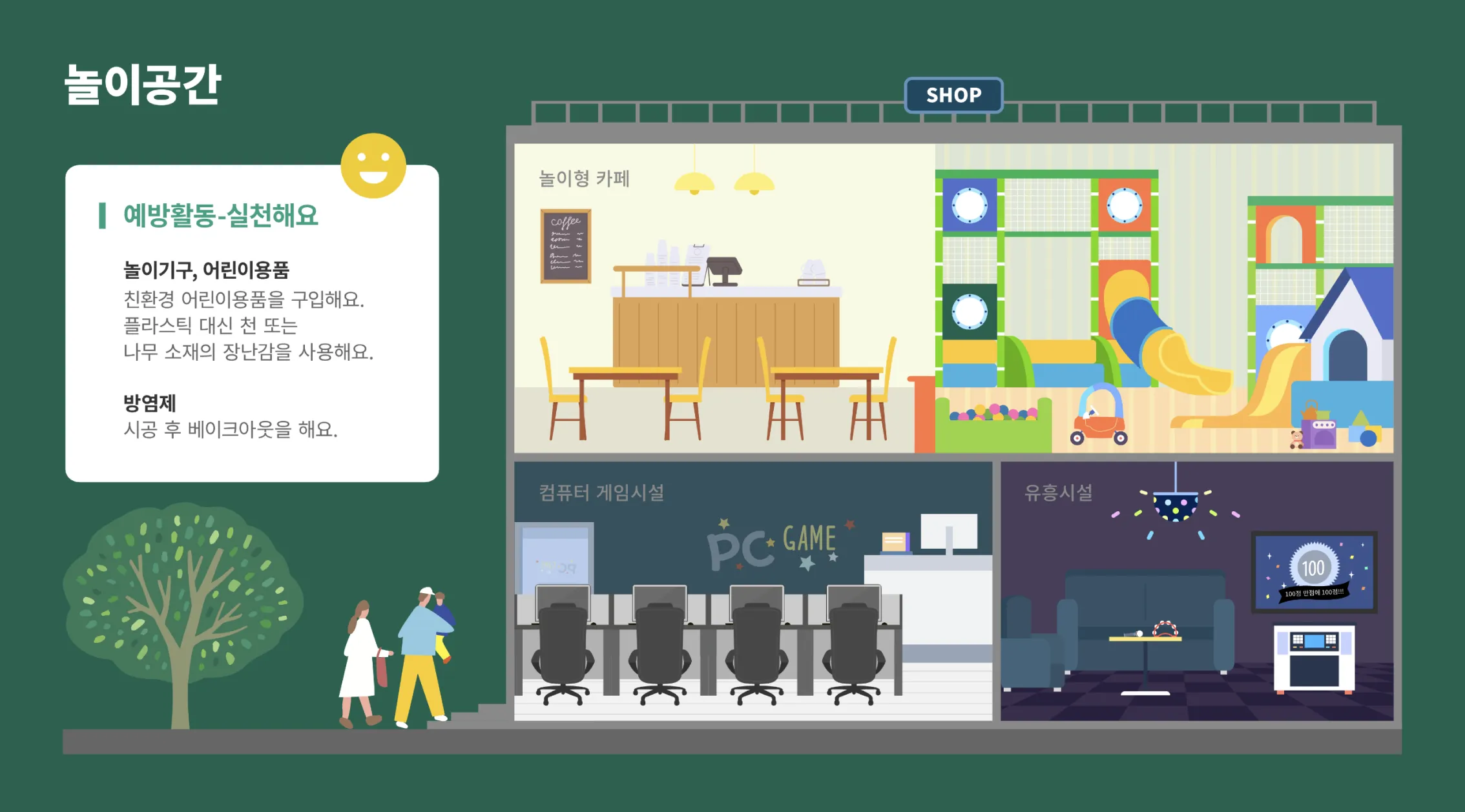 놀이공간은 놀이현 카페, 컴퓨터게임시설, 유흥시설로 구분합니다.